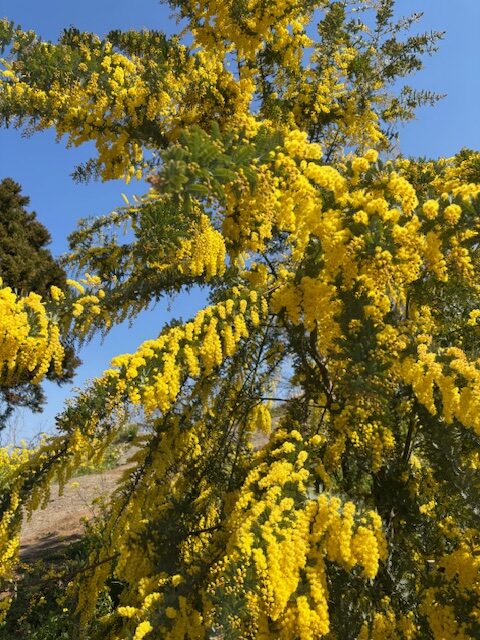 ミモザも花盛りで・・・菜の花と併せて本当に゛黄色い丘゛そのものでした。