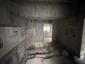 今までは解体からあまり見た目は変わらず、配線屋配管・下地の状況だったり、写真だったりでイメージが掴みにくかったと思いますが、一気に壁のボードが貼られいよいよ仕上げの作業に取りかかる段階で、現地でのお打合せができたので廊下の幅や、コンセントの位置・新しくなったサッシや、カーテンのイメージなどご確認・体感していただけて良かったです。追加や変更など打合せいただき、このまま工事を進めて来月には新しい空間にお引越ししていただけそうです。