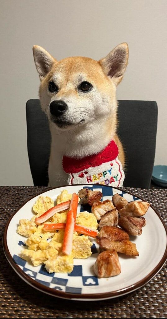 早く食べたくてマテの合図が解除になるのを、目を離さずに待っております。可愛い♡