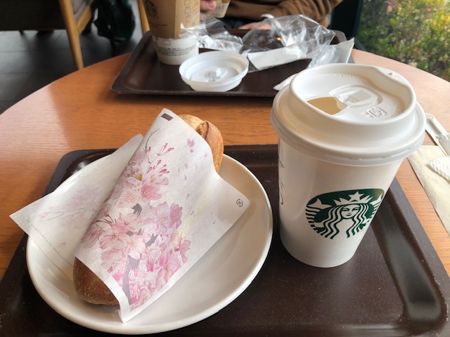 cafeでふと見つけた・・・🌸です。桜柄のペーパーでまかれていて、ついオーダー