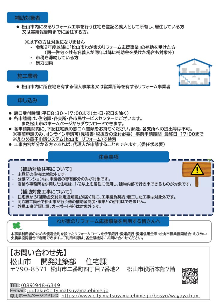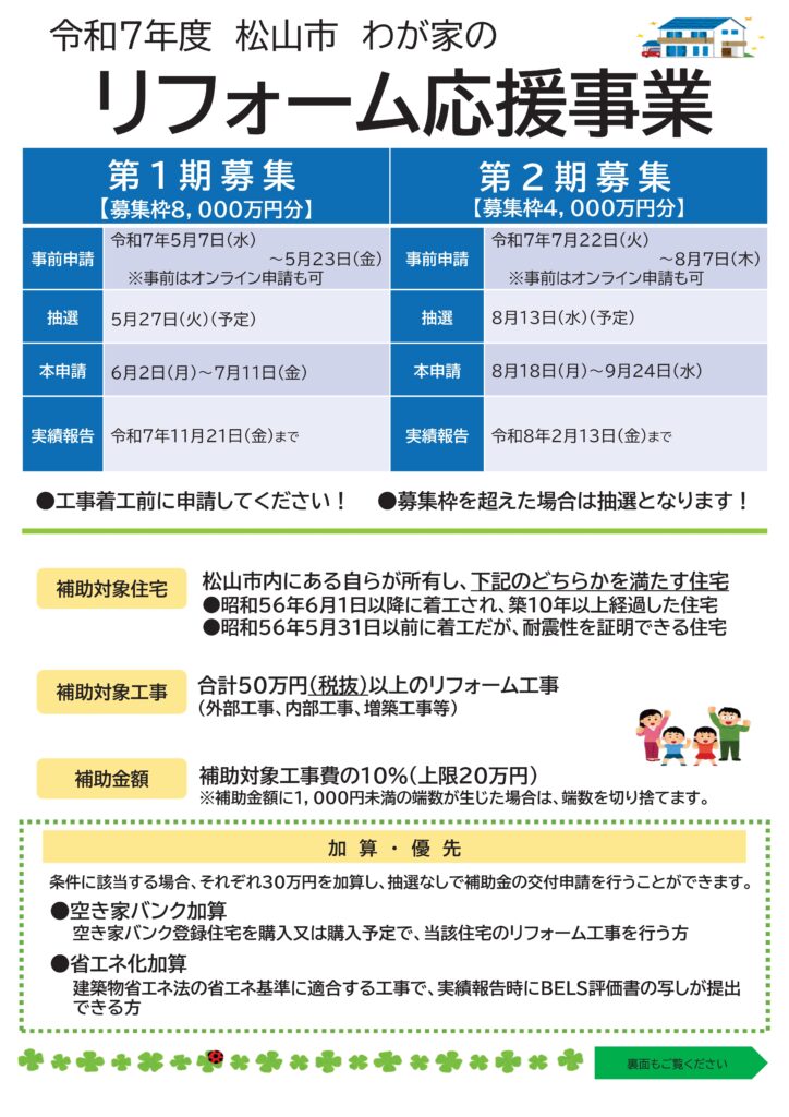 愛媛県松山市のリフォーム補助金、令和7年度『松山市わが家のリフォーム応援事業』