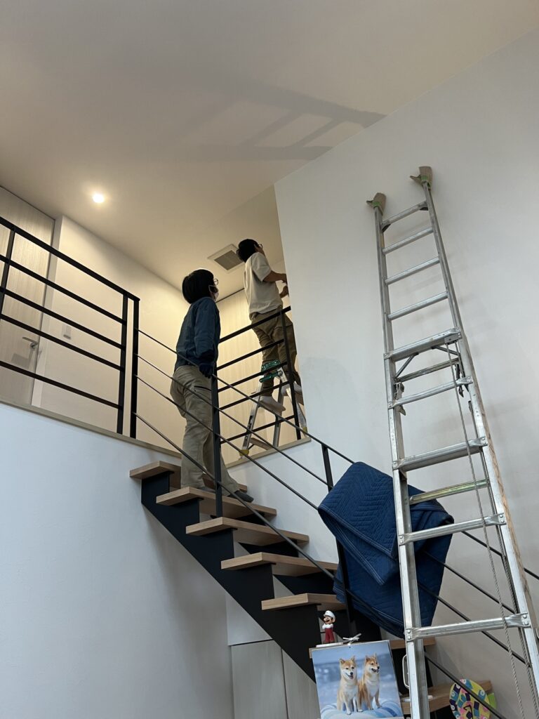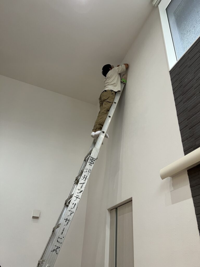 今回は、OB様宅の吹抜け部分のクロスにできた隙間の補修を行いました。