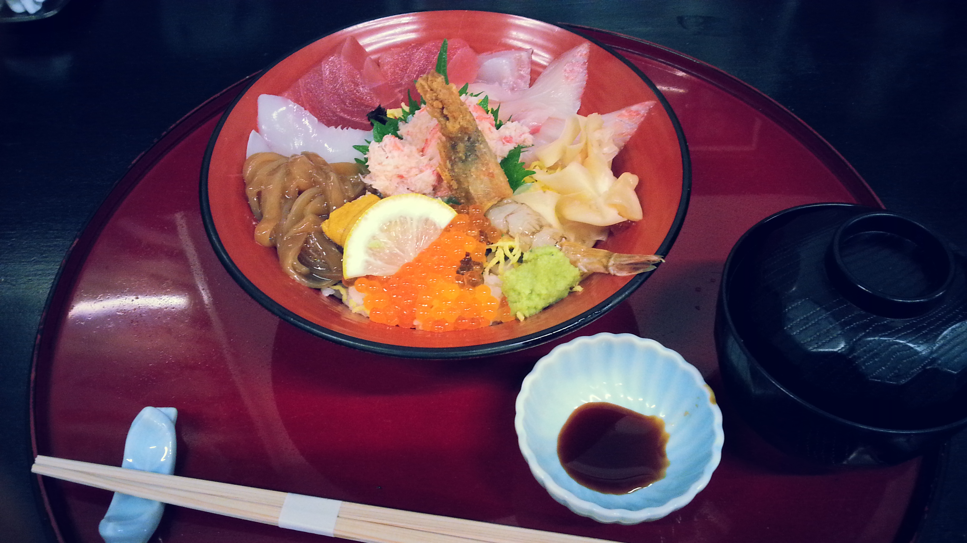 そして、お待ちかね!お昼ご飯は『海鮮丼』☆境港の市場の中で。