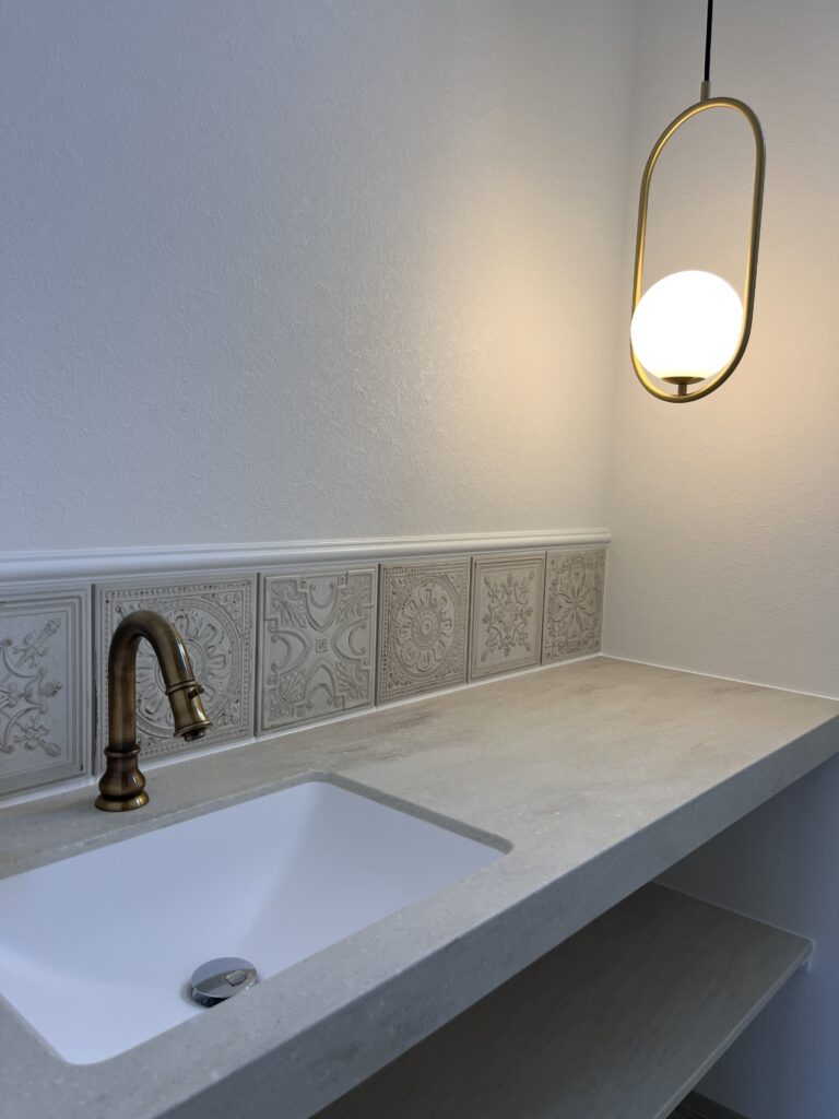 造作のの手洗いカウンターは奥様のイメージから私も大好きなメーカーのタイルを取り寄せてご提案させていただきそこから水栓や照明もつなげてこだわりの空間に。。。