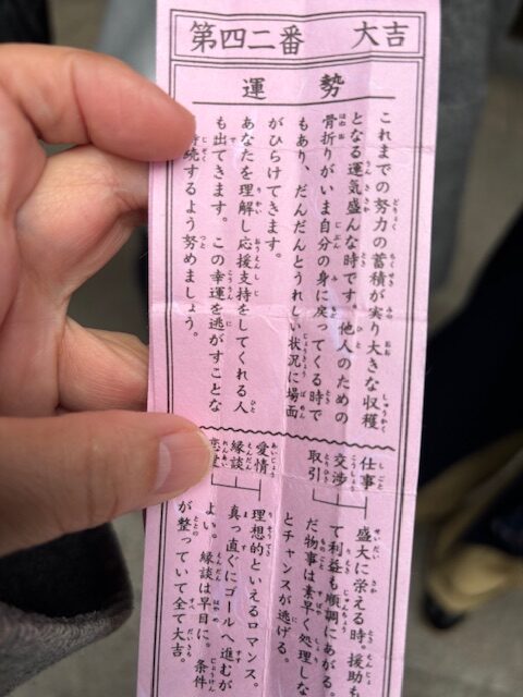 ご祈願の帰りにおみくじを引きました。