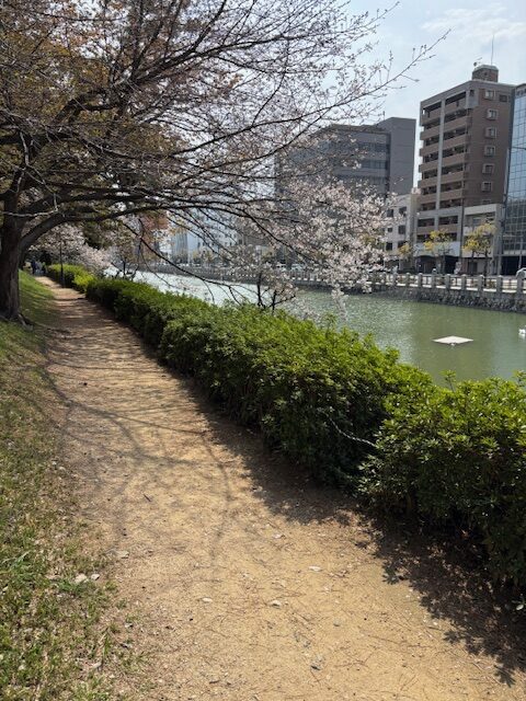 先日のお休みに初めての松山城の下のお堀付近でちょっとしたお花見気分