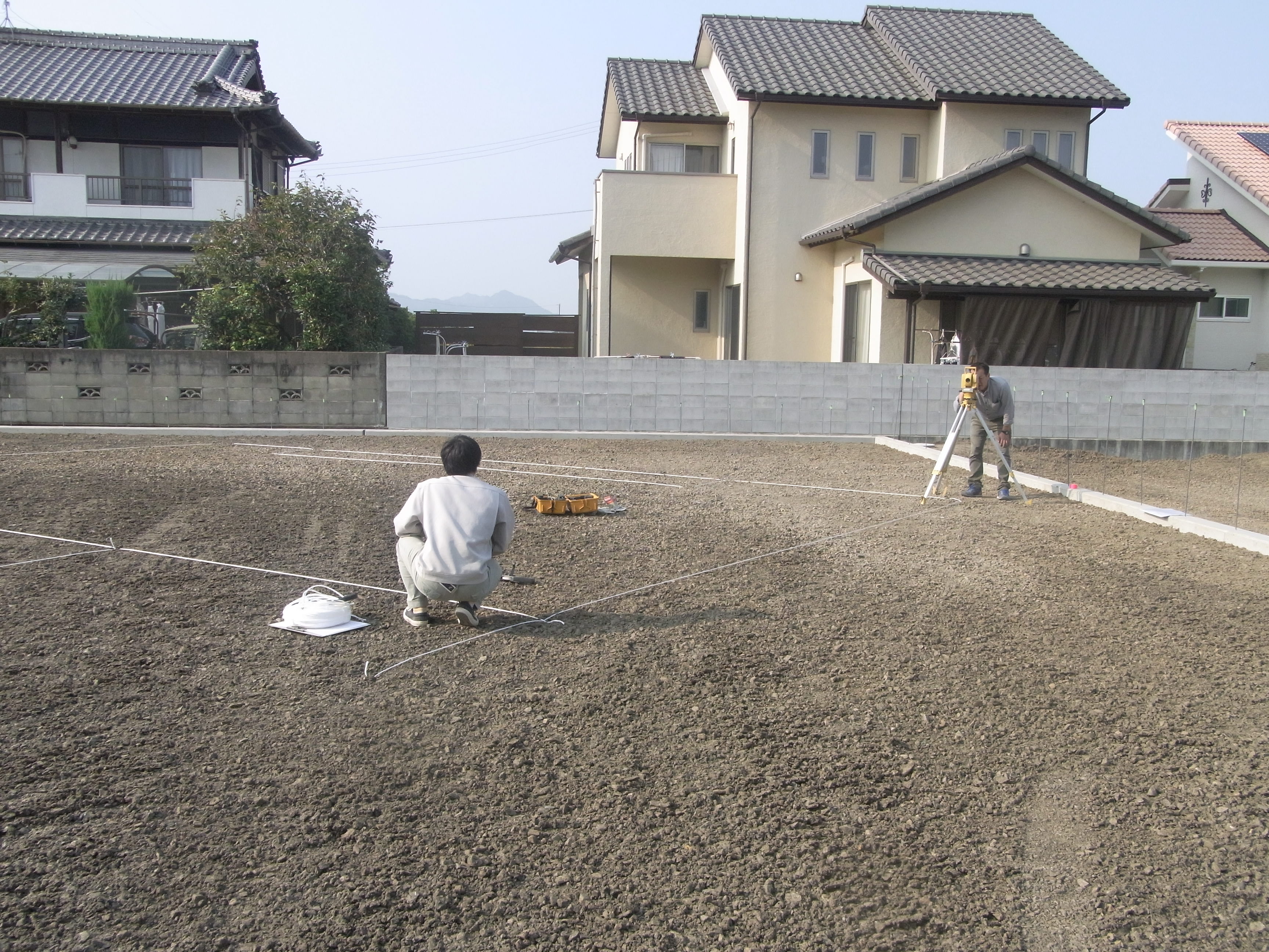 明日の地鎮祭に向けて、土地の地縄をしてきました。