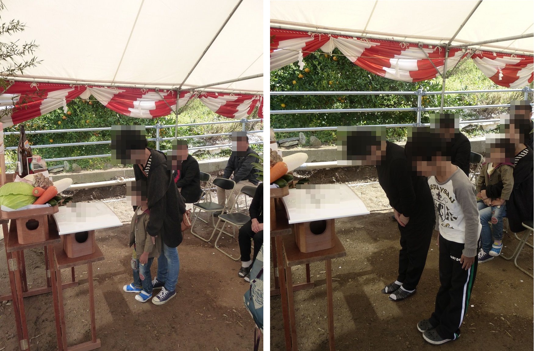 K様、H君による鍬入れ~玉串奉納(2礼2拍手1礼)