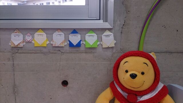 保育士さんが作ったサンタクロースがだんだん増えて7人 (*^^)