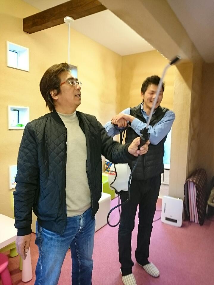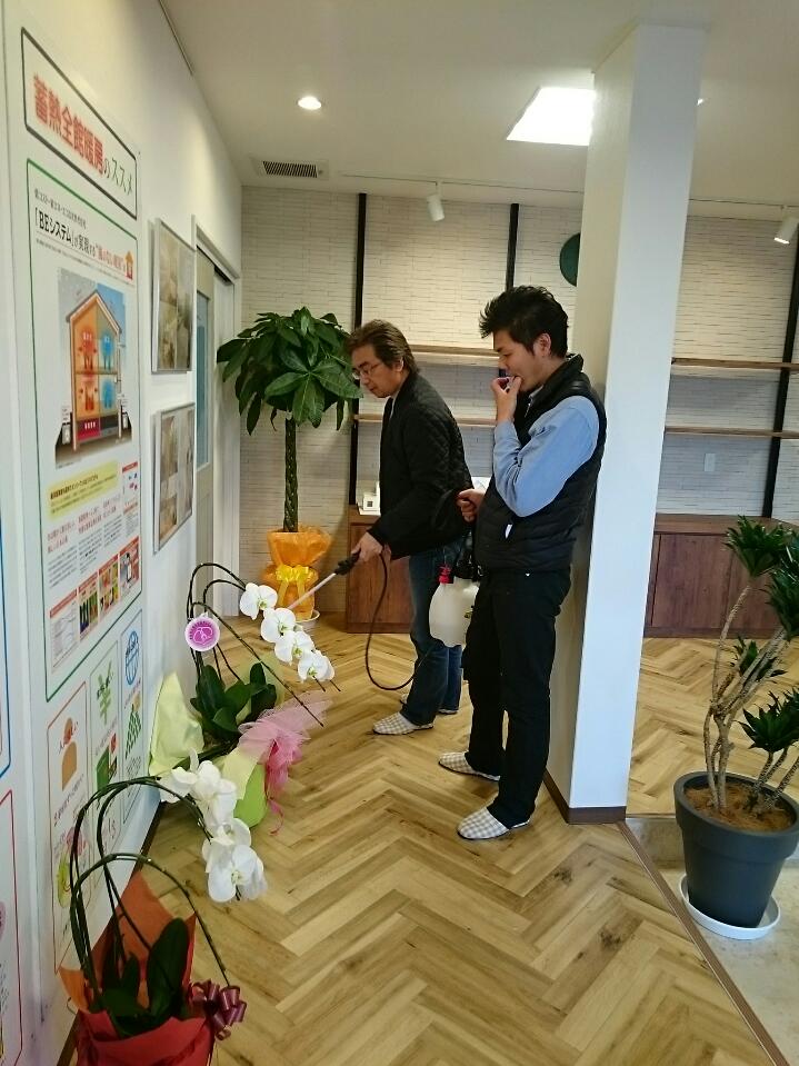 昨日 松山から 社長と工務の 松下さんに来て頂き オープンに先立ち 事務所内 ミーティングルーム内 外回りを