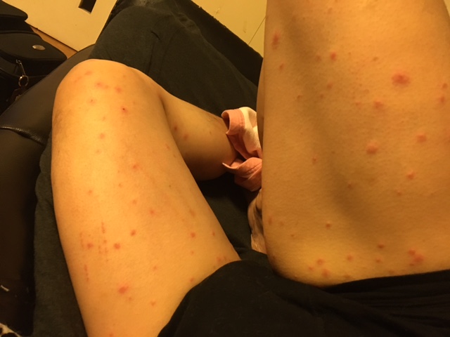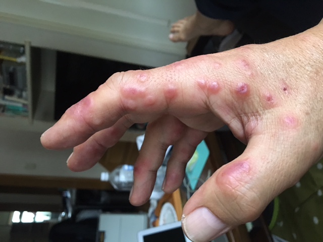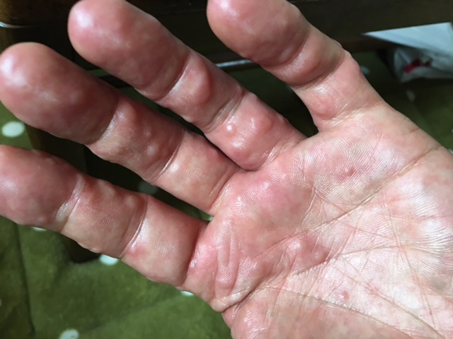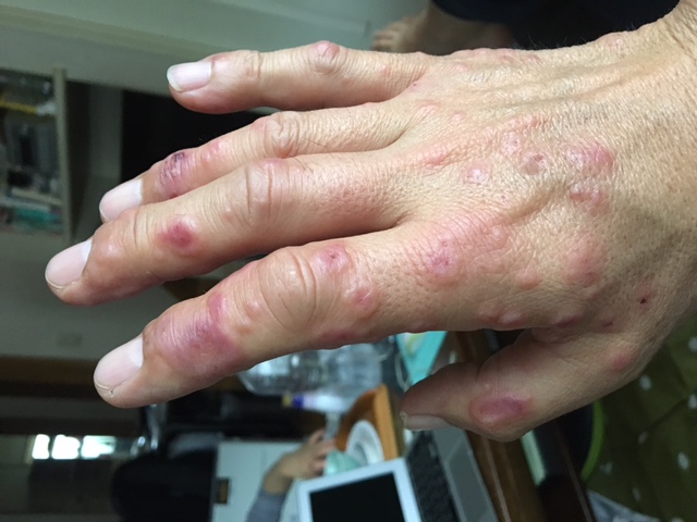 月初め4月2日、全身がかゆくなりまして、その翌日には体中に湿疹のようなものや、水泡のようなものができてきまして・・・
