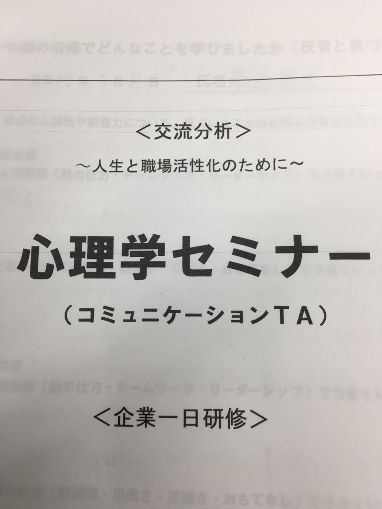 今日はTAと言う心理学セミナーの講習を受けてきました。