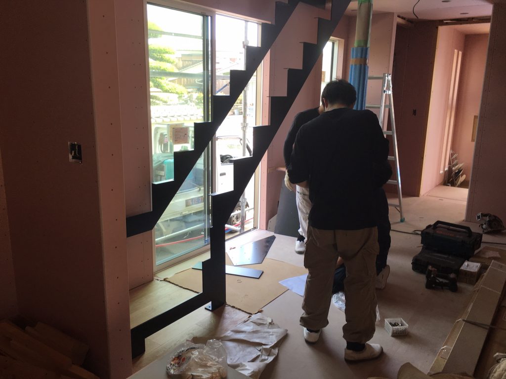 新築の現場ではつい先日鉄骨階段の据え付けを行いました(*^_^*)
