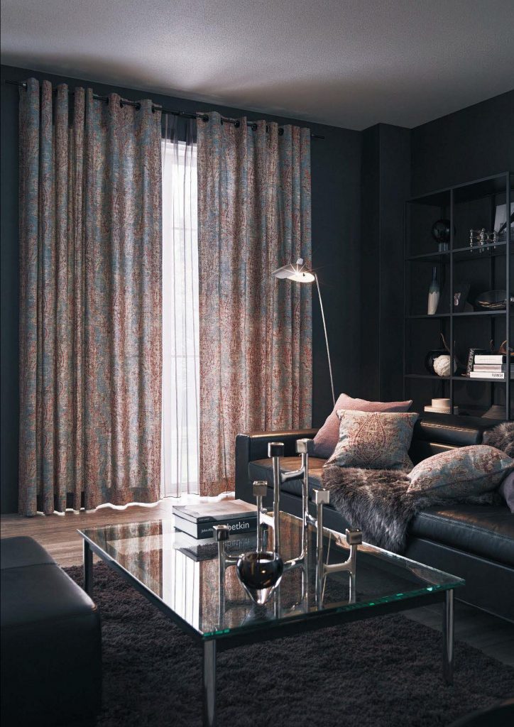 モダンなインテリアにトラッドなダマスク柄のカーテンが不思議に