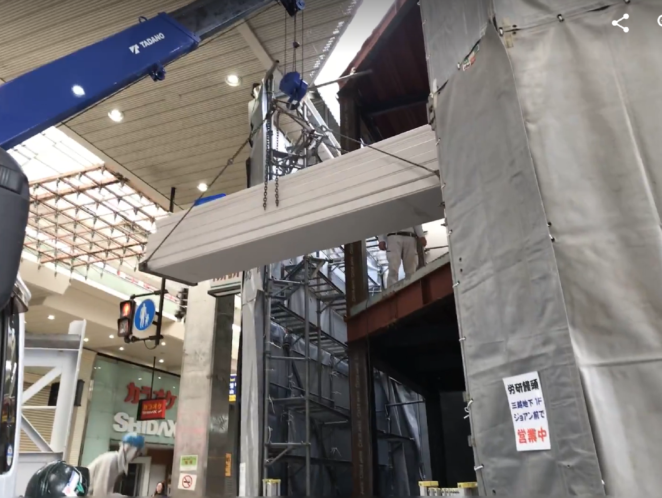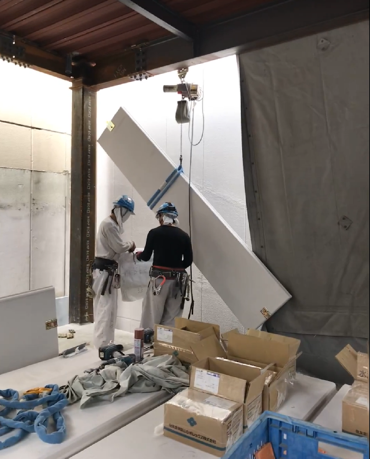 1枚の重量が重いのでウインチを使って吊り上げます。