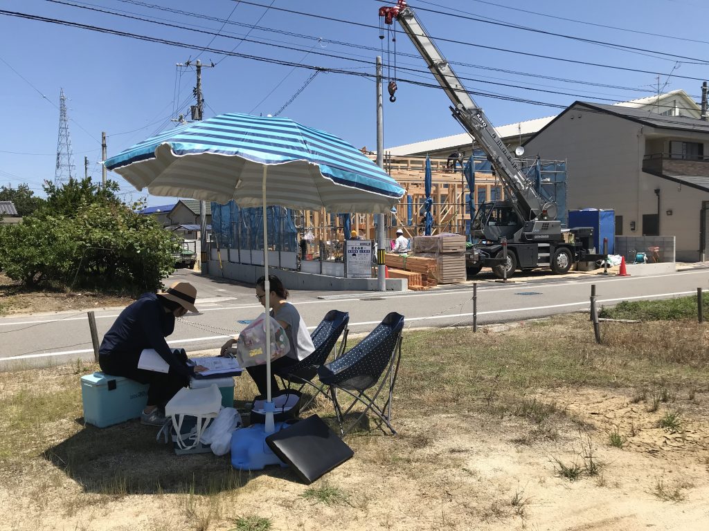 お施主様がパラソルを用意して下さっており、快適に打合せをすることができました!