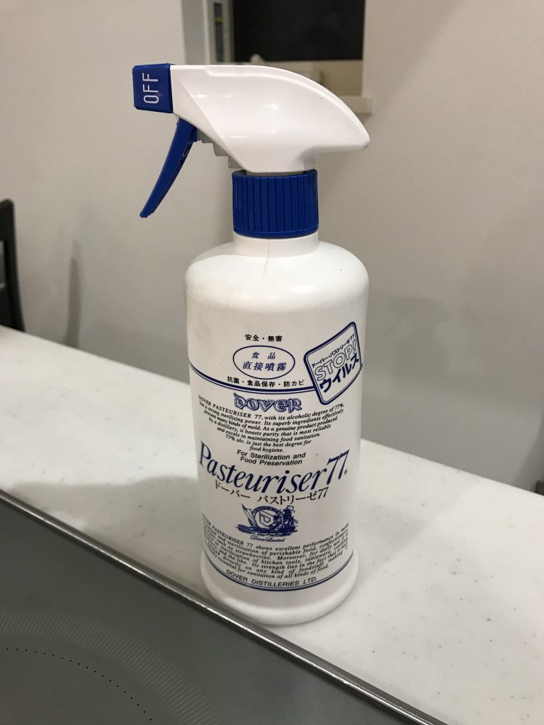 醸造用アルコールを使用し、77%濃度で強力な除菌力があるそうです。