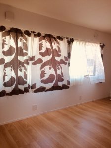 子供部屋にお客様が探してこられたお気に入りのカーテンだそうです