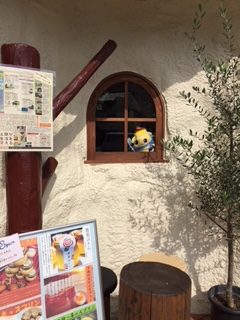 窓から「いーよちゃん」(いーよプリンのマスコットです。)が、お出迎えしてくれてます。