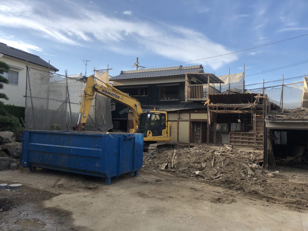 分別作業も終わり重機にて解体作業が進んでいます