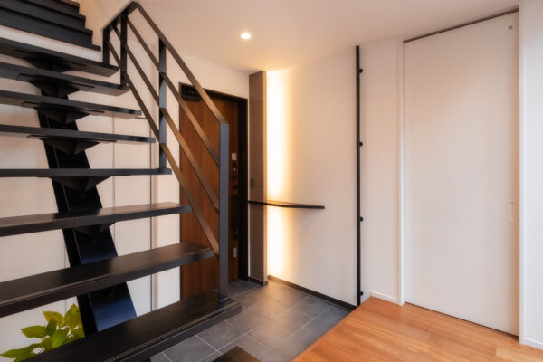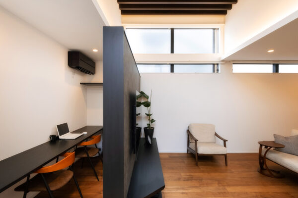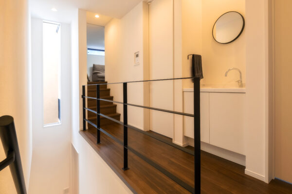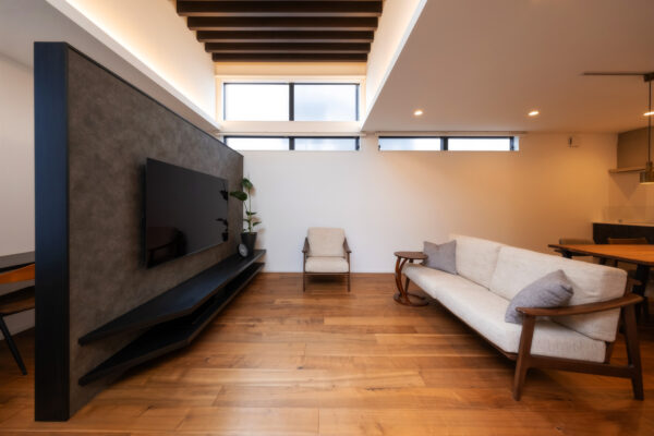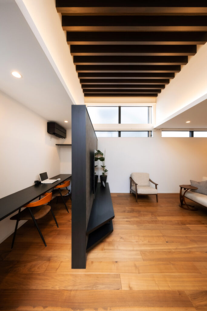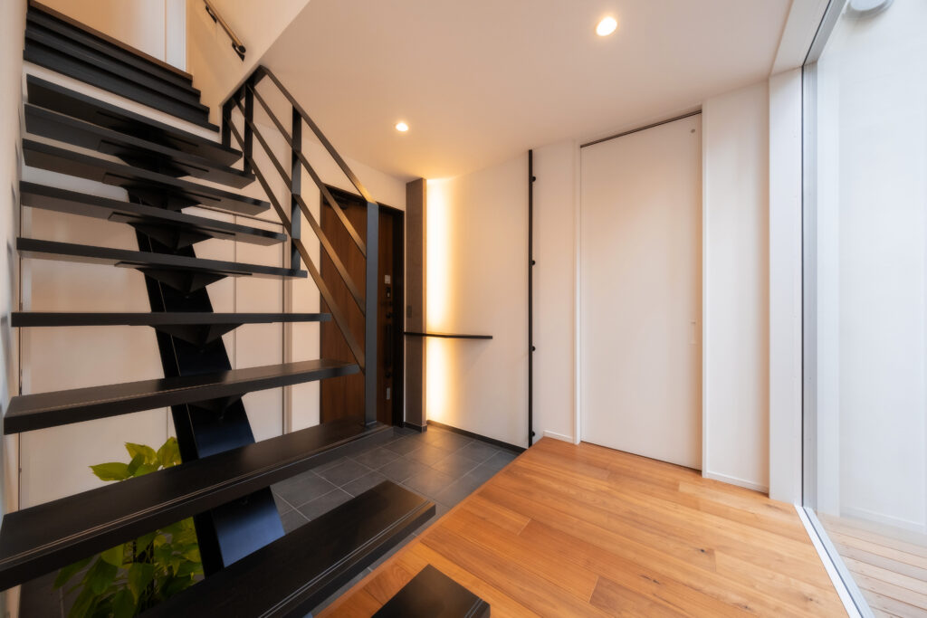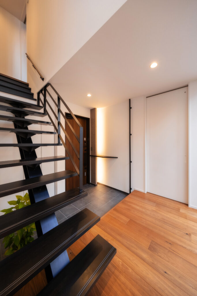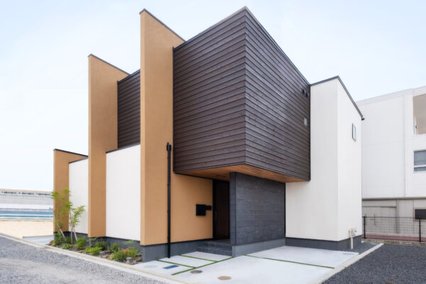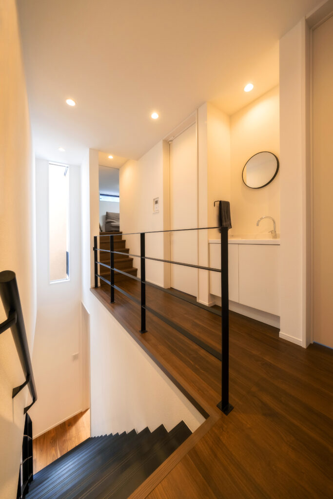 ひときわ目を惹くモダンな外観。外部からの視線を抑えつつ、邸内では中心に据えた中庭から、家じゅうにやわらかな光が差し込みます。